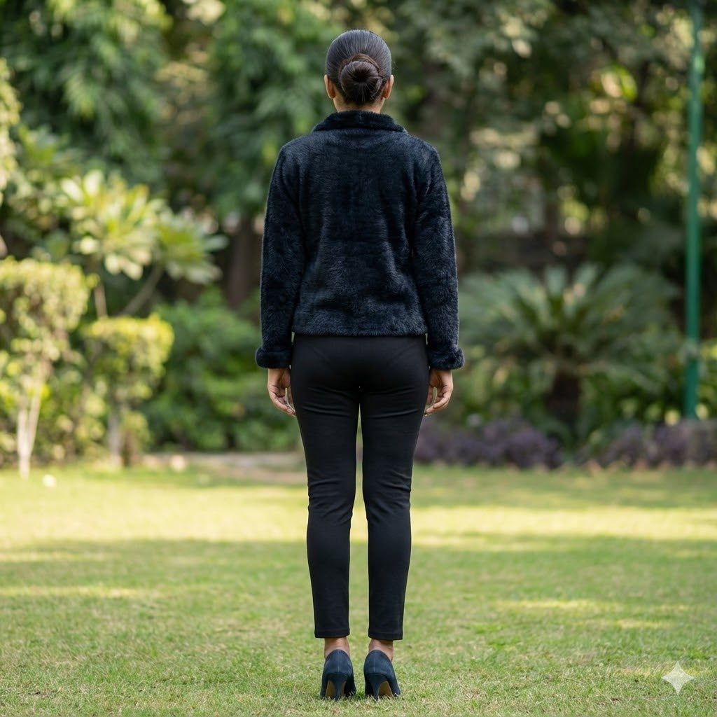 Luxe Black Faux Fur Cropped Jacket – Women’s Formal Winter Wear